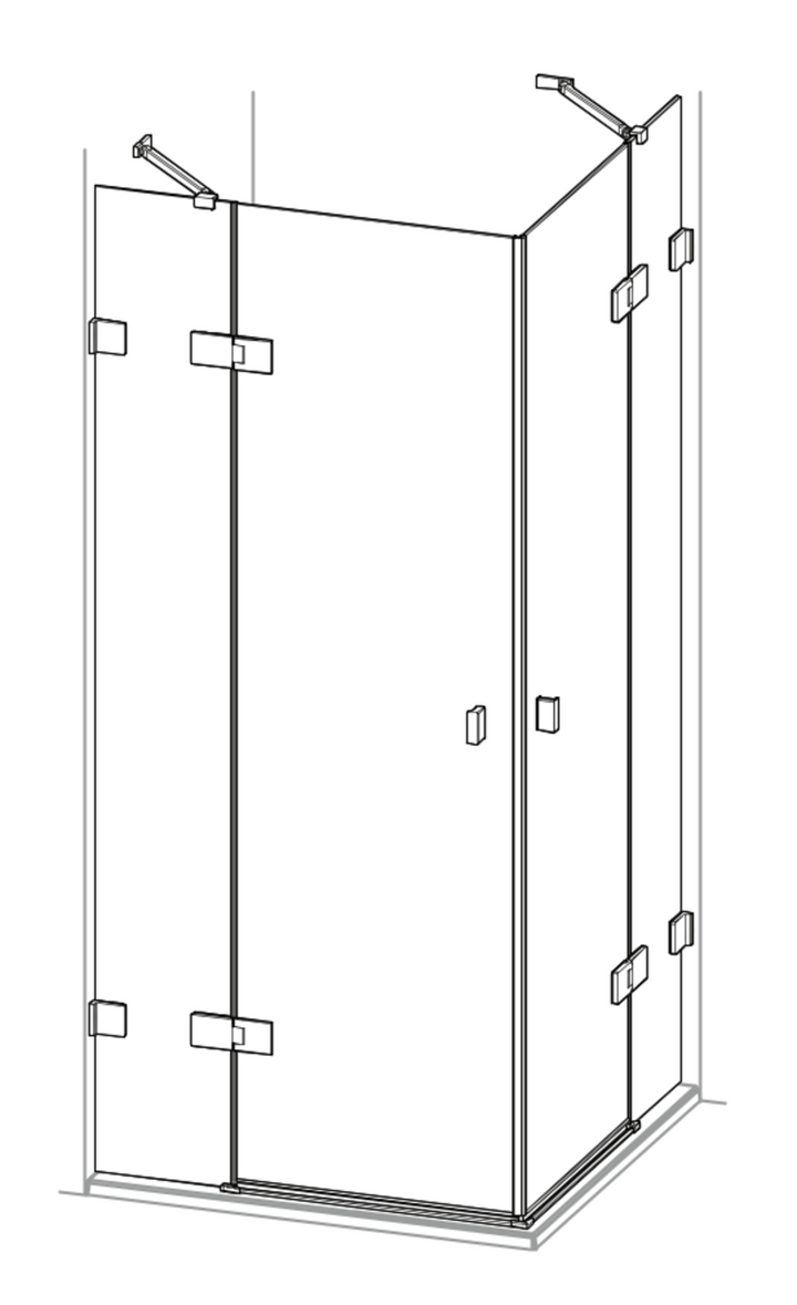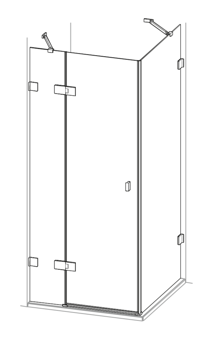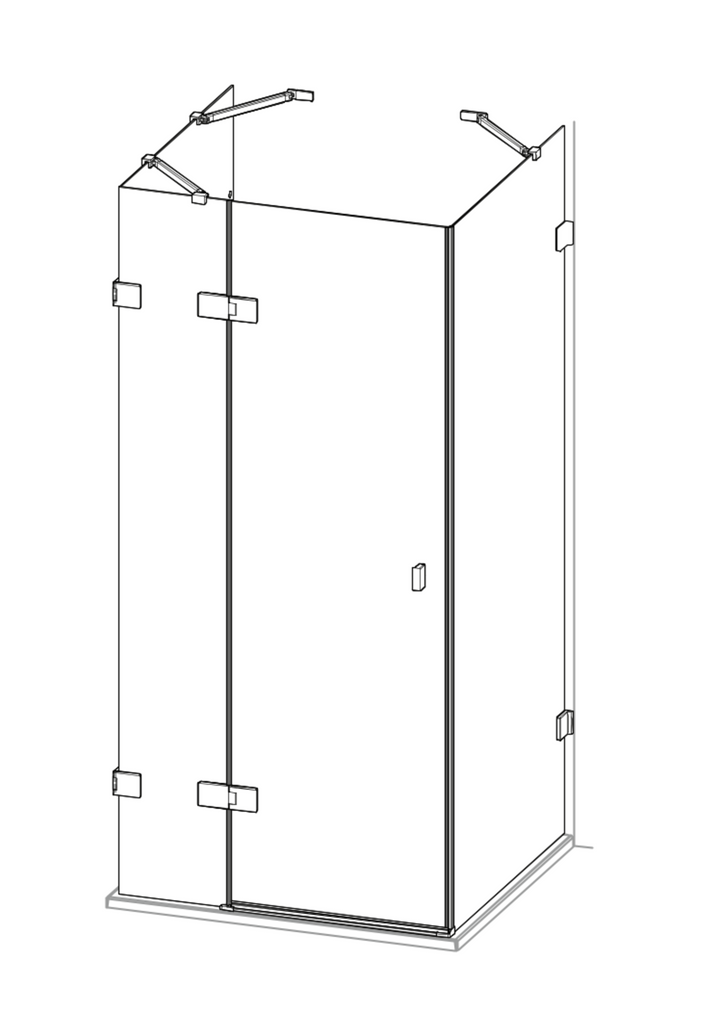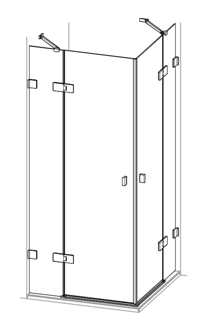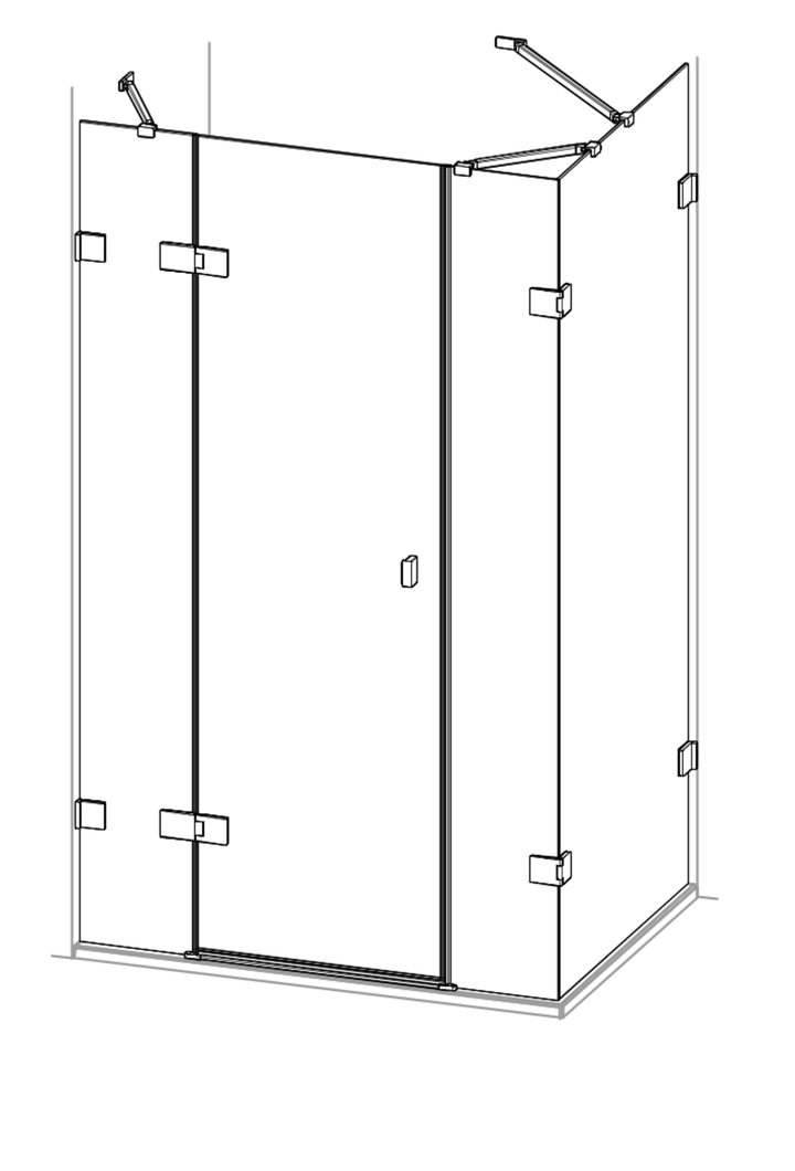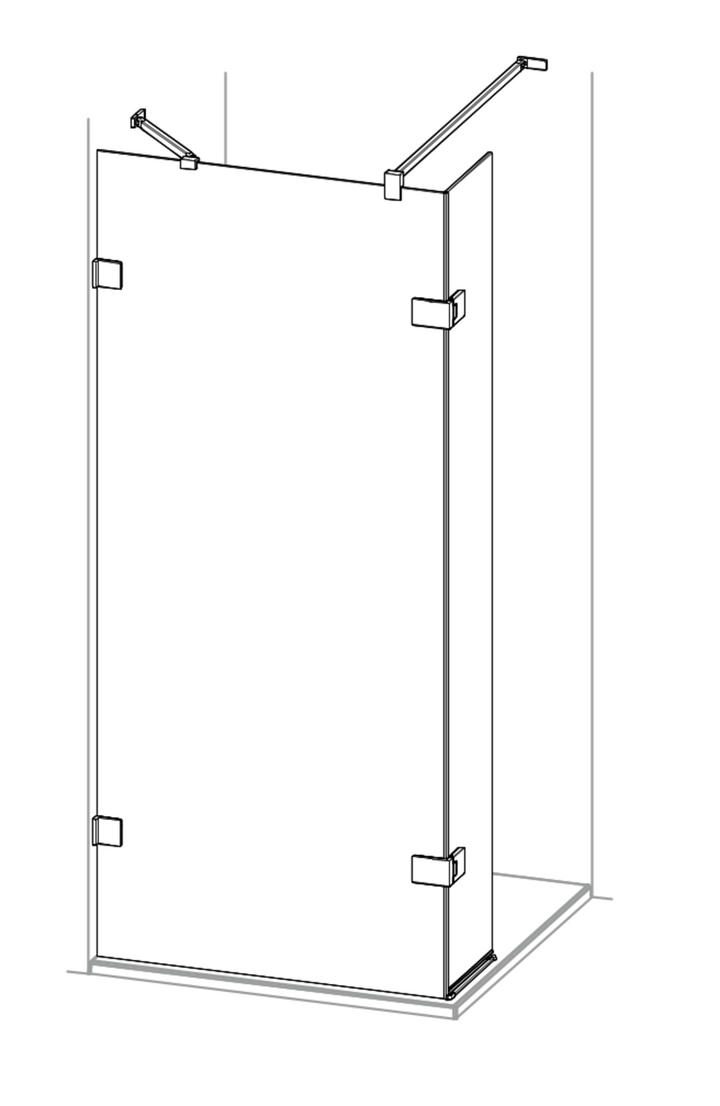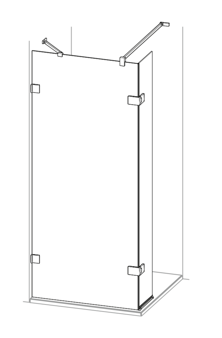Solva rahmenlos 4-Eck Schwingtür mit festem Segment und 2 Seitenwänden