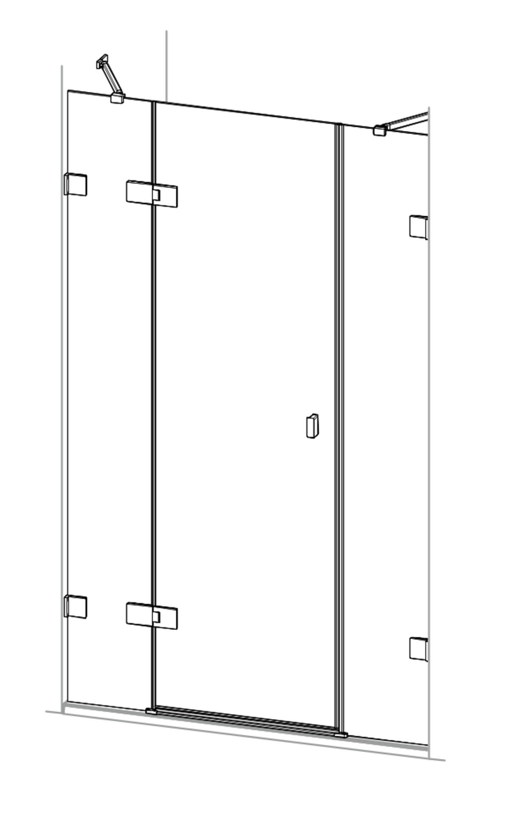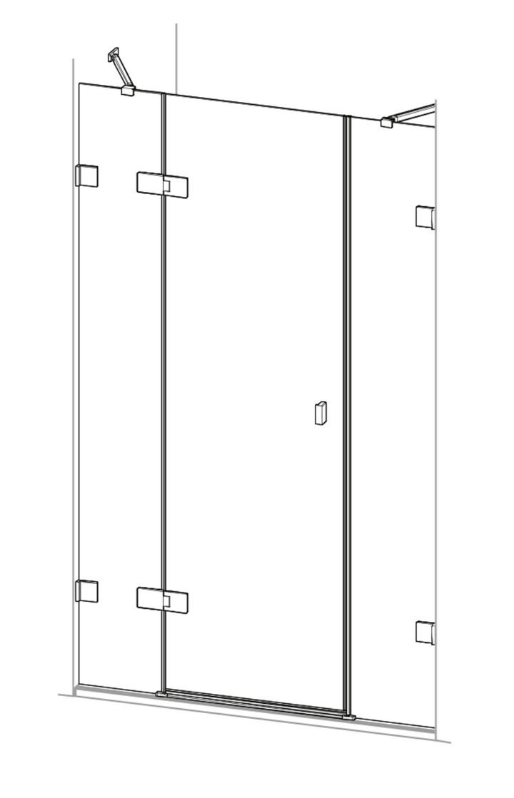 SolvaPro rahmenlos 4-Eck Schwingtür mit festem Segment und Nebenteil in Nische