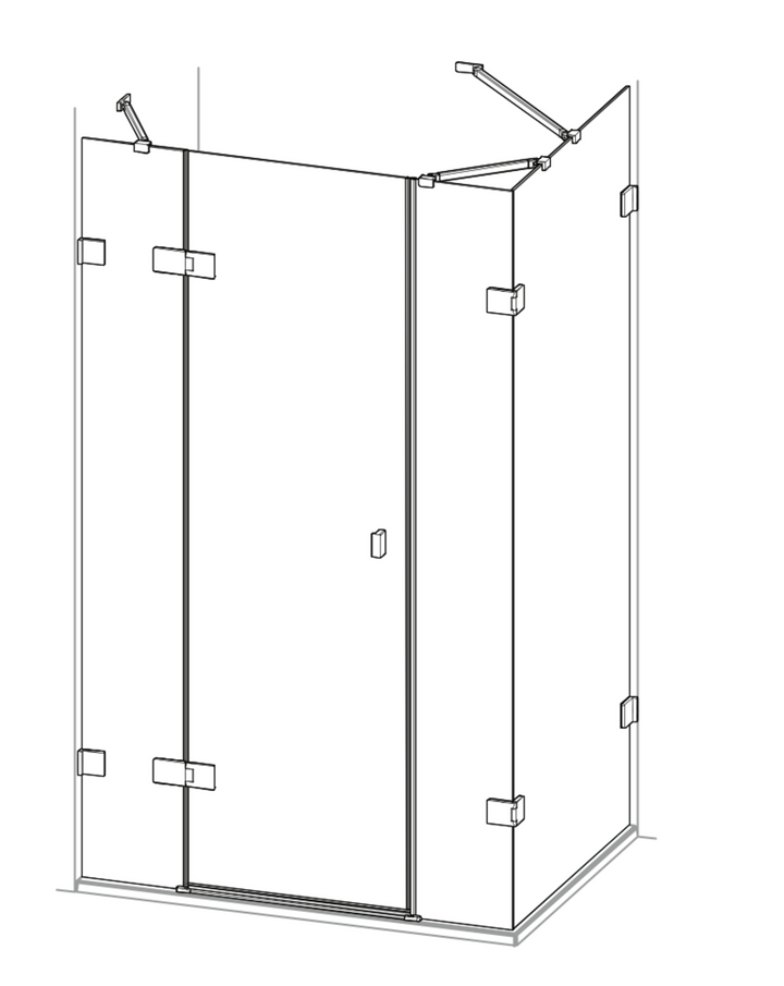 SolvaPro rahmenlos 4-Eck Schwingtür mit festem Segment mit Nebenteil und Seitenwand
