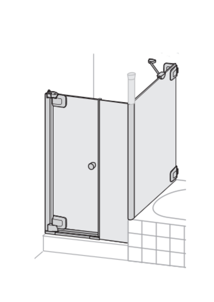 Studio rahmenlos 4-Eck Schwingtür mit Nebenteil und Seitenwand, kurz