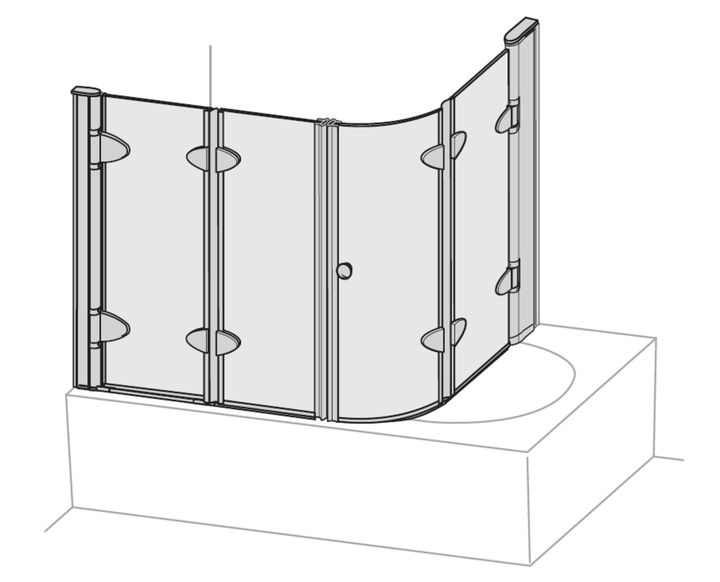 2003 Pare baignoire 3 elements avec segment courbé