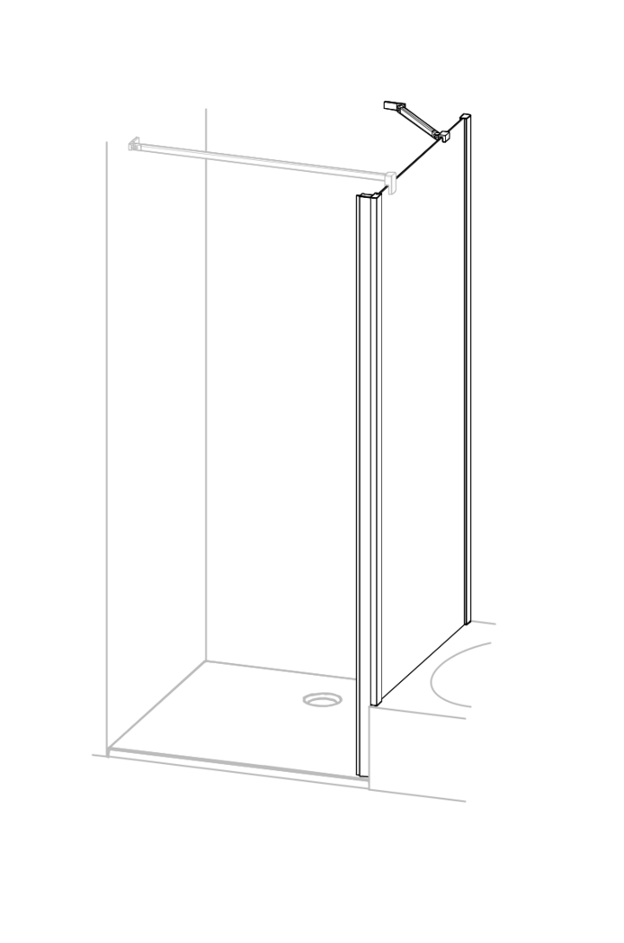 Solva pure rahmenlos 4-Eck Walk-In Seitenwand mit beweglichem Segment