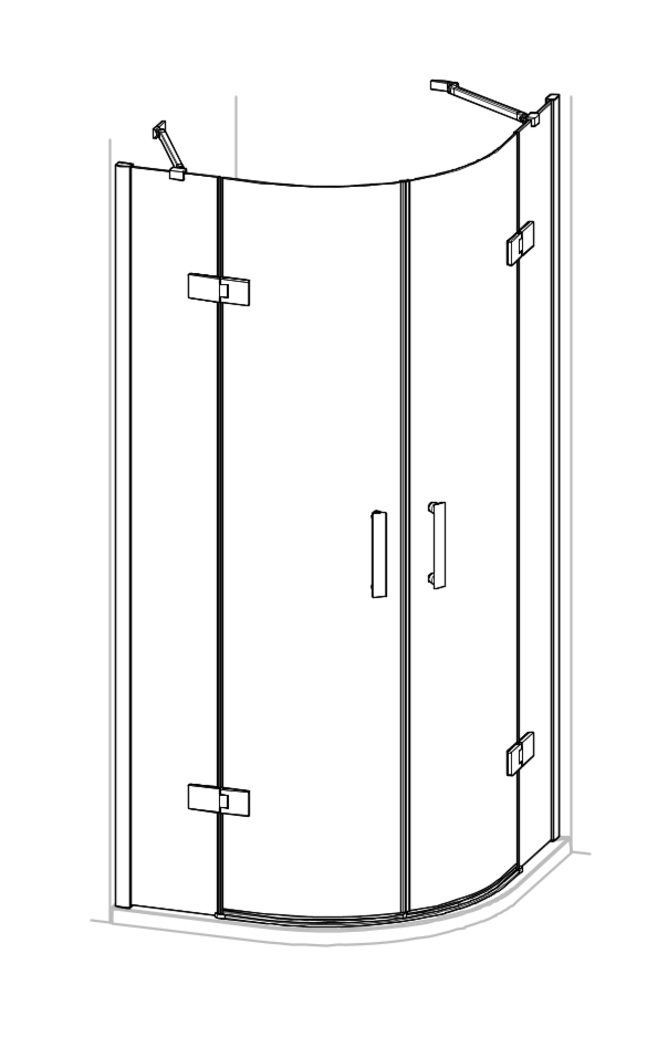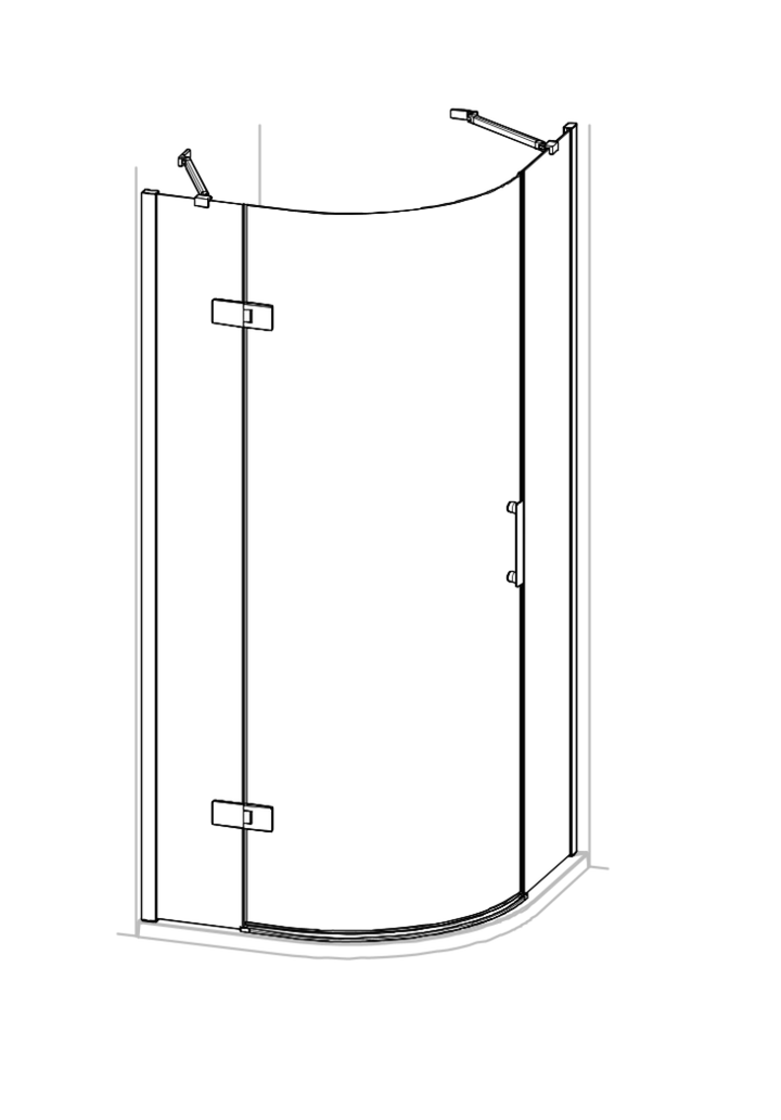 Solva pure rahmenlos 1/4 Kreis Schwingtür mit festen Segmenten 2-flüglig