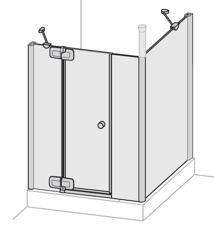Studio teilgerahmt 4-Eck Schwingtür mit festem Segment und Nebenteil für Seitenwand