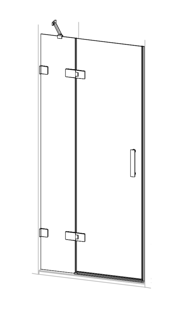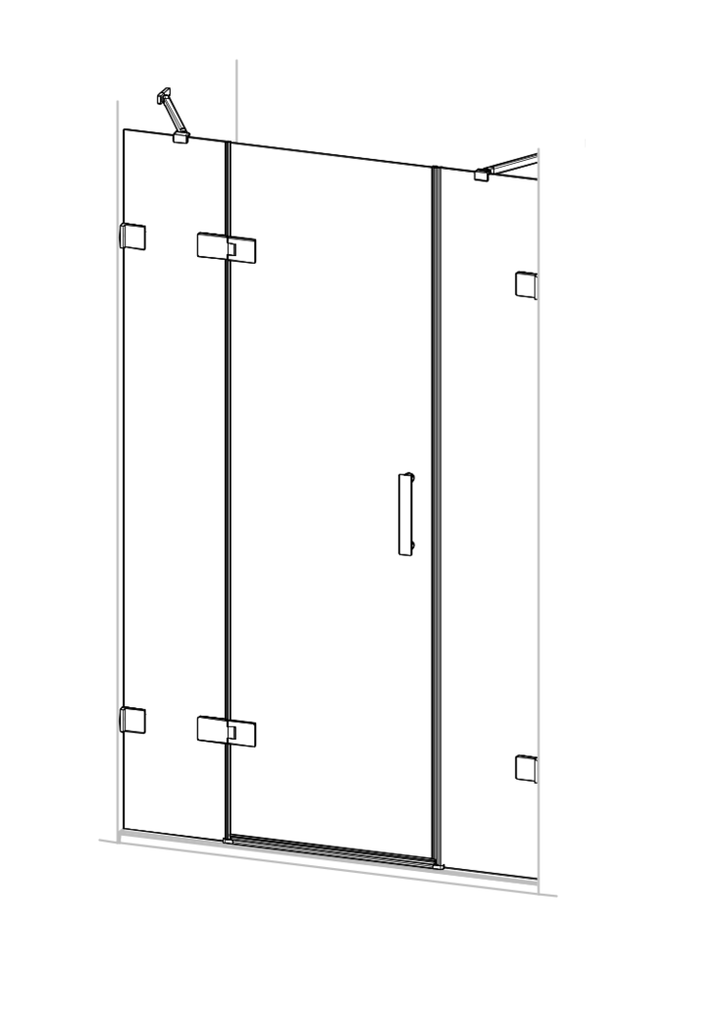 Solva pure rahmenlos 4-Eck Schwingtür mit festem Segment und Nebenteil in Nische