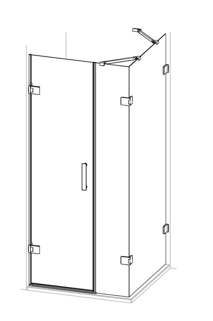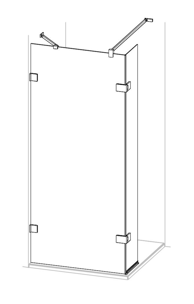Solva pure rahmenlos 4-Eck Schwingtür mit Nebenteil und Seitenwand