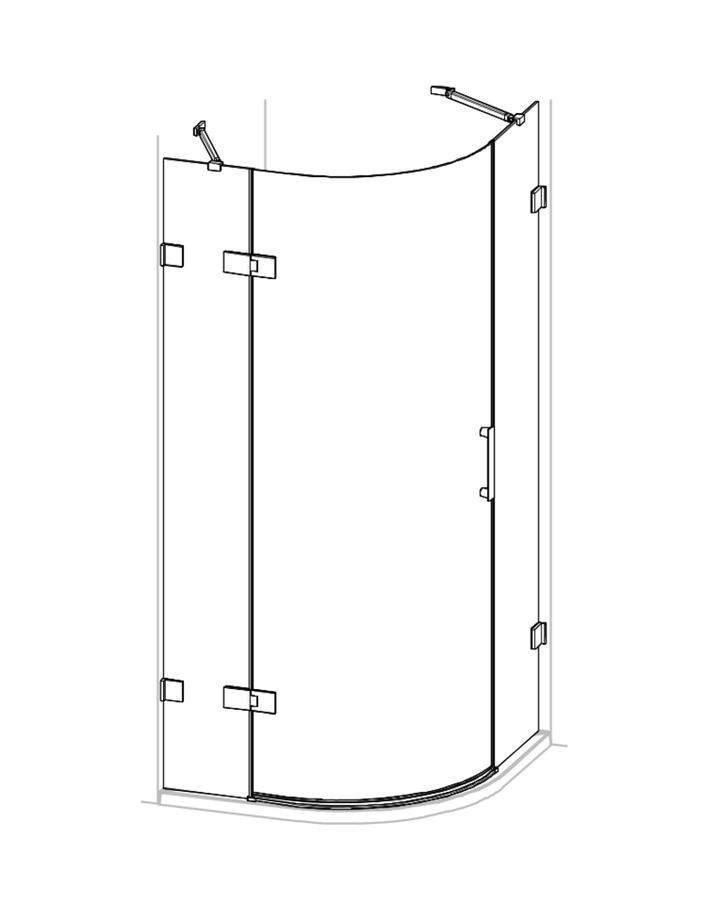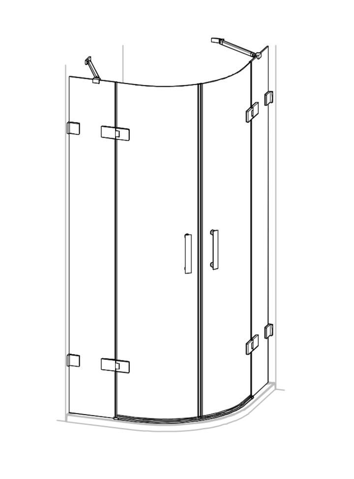Solva pure rahmenlos 1/4 Kreis Schwingtür mit festen Segmenten 2-flüglig